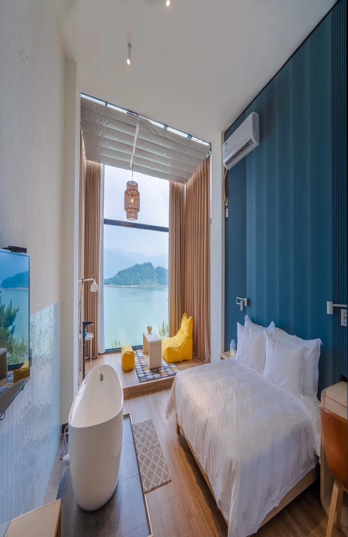 這里有無邊際泳池,實現(xiàn)水天一色的精致,更有網(wǎng)紅房皓月般通透的湖景和松林影印的綠意盎然。