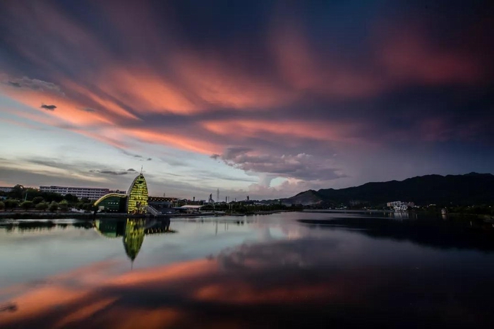 09.因為傍晚時分,東江灣的天空彩霞似錦,美得讓人心醉。