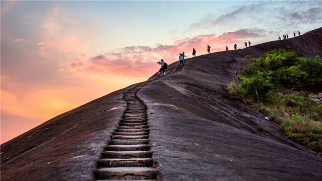 高椅嶺紅巖綠水,赤壁丹霞,,峽谷奇洞組成了“四面青山列翠屏、草木花光盡是香”的奇異丹霞地貌,是一個賞之叫絕、百走不厭的戶外休閑攝影勝地,丹霞地貌發(fā)育于紫紅色砂巖和礫巖之上,景觀多為方山,渾園平頂,四壁懸崖陡峭,巖腳陡坡辟有磴道。其形狀千姿百態(tài),風(fēng)景絢麗迷人。據(jù)此,有人評價郴州的丹霞景觀為“世之所有,此盡有之” 大旅行家徐霞客曾贊嘆它“無寸土不麗,無一山不奇”并鐫刻“寸土佳麗”。