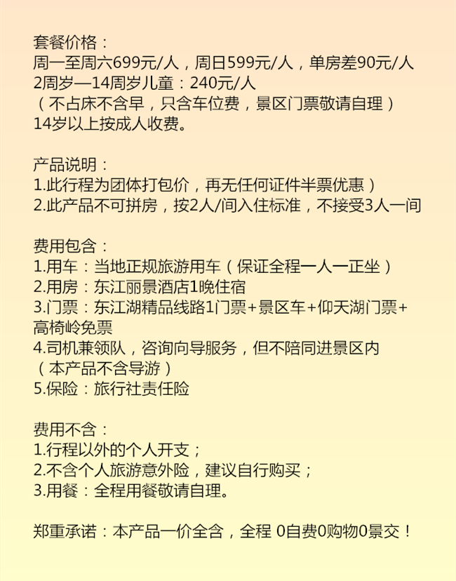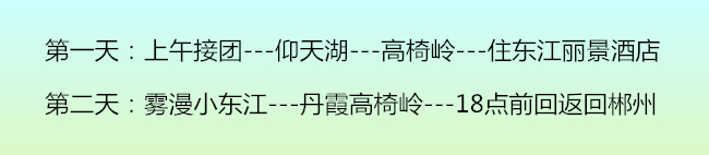 第二天:東江湖景區(qū)一霧漫小東江一高椅嶺--郴州送團(tuán)早起酒店出發(fā)前往東江湖售票廳換乘景區(qū)車到霧漫小東江6:30-9:30,景區(qū)有安排漁夫撒網(wǎng)表演哦。觀后沿小東江觀霧棧道往上游走到3號或者4號站臺,繼續(xù)乘坐景區(qū)環(huán)保車前往終點(diǎn)站--東江大壩旅游碼頭。抵達(dá)大壩后可前往【龍景峽谷瀑布群】(參考時間約1.5小時龍景峽谷全線游程2.5公里。看山景,山勢陡峭,青山滴翠,古木參天;觀水景,一條清澈的溪流在峽谷中穿行,瀑布成群沿途可以觀賞到煙竹山瀑布、龍景瀑、龍吟瀑、三疊瀑、龍卷瀑、鴛鴦瀑等形態(tài)各異的瀑布和古松坳、連理樹、龍鱗石等干姿百態(tài)的景點(diǎn)。