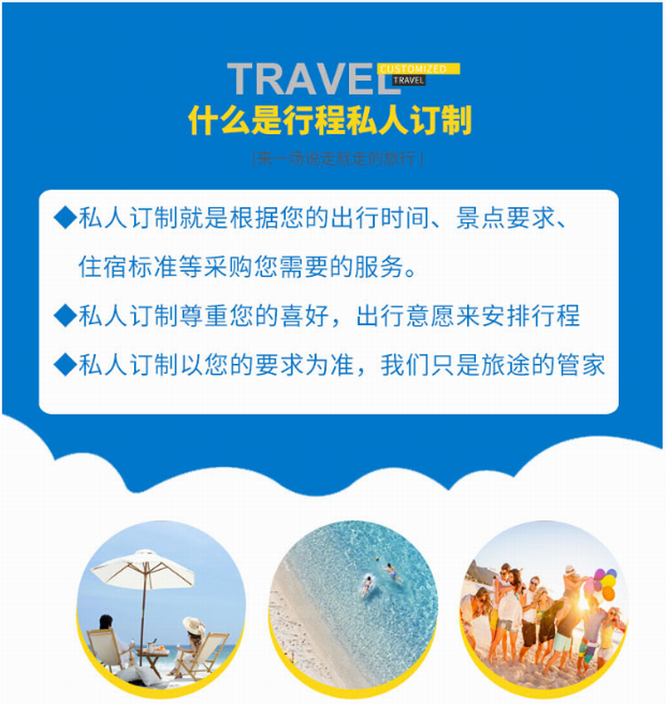 3.本行程必須身體健康且有自理能力的客人參加此線路,中老年人尤其是患病者參加旅游,需如實向旅行社提供健康信息,并根據(jù)自己的健康狀況量力而行,如游客感覺身體不適,請馬上告知導(dǎo)游,因游客身體原因產(chǎn)生的一切后量與責(zé)任,旅行社概不承擔(dān)。