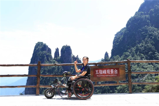 東進西出:索道五指峰站→乘坐索道→索道天臺寺站→棧道中線→峽谷餐廳→摩天嶺電梯→棧道上線→小天臺→天臺寺→萬壽塔→天臺山停車場
